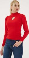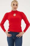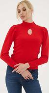 Detay: Dik yaka, fitilli, uzun kol triko kazak;