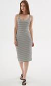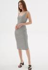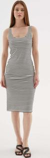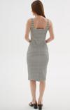Fashion Friends Kare Yaka Midi Elbise Ekru Çizgili
