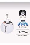 Yuvarlak Solar Led Kamp Lambası Işıldak Usb’den Gün Işığında Şarj 5 Kanatlı 90°