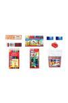 -1 adet 12 li kırmızı kurşun kalem -1 adet 12 li mercanlı kurşun kalem -1 adet 12 li karton kutu kuru boya -1 adet s12 sulu boya -1 adet 12 li keçeli boya -1 adet 12 li pastel boya -1 adet çiftli kutulu kalemtraş -2 adet mavi sınav silgisi
