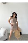 Kare yaka detayı ile dekolte bölgesini şık bir şekilde vurgular