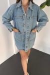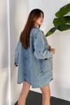 Fav Style Kadın Çift Cepli Overize Uzun Ceket Mavi Standart