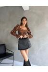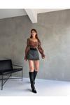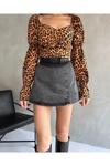 Şık ve modern tasarımıyla dikkat çeken bu denim arkası çift cepli mini şort etek, antrasit rengiyle her gardıropta yerini alacak.