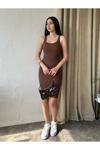 Kahverengi rengiyle kolayca kombinlenebilirlik sunan bu elbise, gardrobunuzdaki diğer parçalarla uyum içinde olmanızı sağlar.