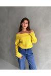 Kadın Madonna Yaka Kazak Sarı Standart