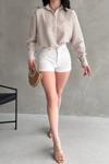 Sateen Payet Detaylı Klasik Gömlek - EKRU