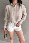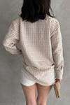 Fav Style Kadın Oversize Çizgili Uzun Kollu Dokuma Gömlek Bej S