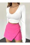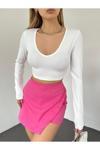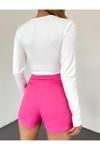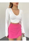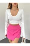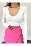 Fav Style Kadın V Yaka Uzun Kollu Crop Bluz Beyaz L