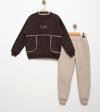 Favo Kids Erkek Çocuk 6-7-8-9 Yaş Pamuklu Şardonlu 3 İp Sweatshirt Jogger Takım I'M Ok Baskılı Kahverengi 6 Yaş
