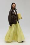 Volanlı, yüksek bel, geniş formda, pileli, astarlı maxi etek.