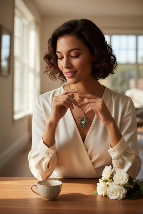 Zarif tasarımıyla dikkat çeken zambak çiçeği kolye, inci taşı ile süslenmiştir ve her türlü özel gününüzde şıklığınızı tamamlar; Bronz materyal bileşeni sayesinde dayanıklılığı artırılmış ve uzun süreli kullanım için ideal bir seçim haline getirilmiştir;