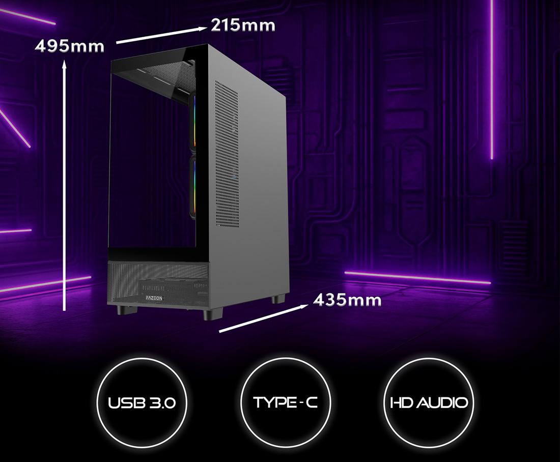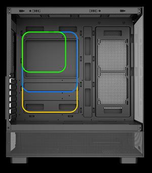 Soğutma performansı ve görsel şıklık, bu kasada kusursuz bir dengeyle buluşuyor. Güçlü hava akışı, yüksek ısı üreten bileşenlerin serin kalmasını sağlar.