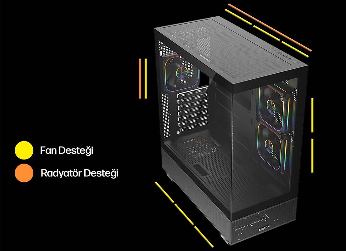 420mm'ye kadar ekran kartı, 165mm'ye kadar işlemci soğutucusu desteği mevcuttur.