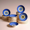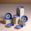 10 cm çapındaki tabaklar, günlük çay saatlerinden özel misafir sofralarına kadar her anı anlamlandırıyor. Nazar desenli yapısı, hem dekoratif hem fonksiyonel bir şıklık sunuyor. Fecra’nın tasarım anlayışı, her yudumu görsel bir deneyime dönüştürüyor.