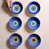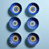 Derin mavi fon üzerine işlendiğinde canlılık kazanan dairesel nazar deseni, masa üzerinde adeta bir tablo etkisi yaratıyor. Fecra Acem Nazarı Koleksiyonu, Türk kültürünün estetik mirasını modern sofralara taşımak isteyenler için tasarlandı.