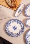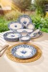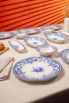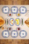 El işçiliğini andıran mavi motifler, sade beyaz porselenin üzerinde kusursuz bir kontrast oluşturur. Her tabakta nostaljik bir dokunuş, her detayda modern bir çizgi hissedilir. Reçellikler, zeytinlikler ve oval kayıklar; kahvaltı sofralarını sadece lezzetli değil, estetik hale getirir.