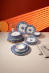 Fecra Majestic Blue Yemek Takımı, tarihî porselen sanatının estetiğini günümüze taşıyor. Asaletin rengi mavi, beyazın zarafetiyle birleşerek sofralarda göz alıcı bir kontrast yaratıyor. Klasik desenlerin modern formda yeniden yorumlandığı bu set, sofranıza zamansız bir karakter kazandırıyor.