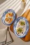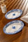 Fecra Majestic Blue 2’li Kayık Tabak Seti, mavi desenlerin asaletiyle sofralarda klasik bir şıklık yaratıyor. İnce porselen yüzeyi ve zarif kıvrımlı kenar yapısı, her servisi özel bir davete dönüştürür.