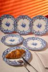 Fecra Majestic Blue 6 Parça Pasta Tabağı Seti, Avrupa porselen sanatının zamansız estetiğini sofralarınıza taşır. Mavi tonların zarif dansı, her tabakta geçmişle bugünü buluşturur. Sofranızda hem nostaljik bir dokunuş hem de modern bir şıklık yaratır.
