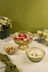 Fecra Rita Koleksiyonu, yeşil camın dinginliğini altın file dokusunun zarafetiyle birleştiriyor. Gün ışığını yansıtan transparan yapısı, her açıdan sofistike bir parıltı sunarken; altın detaylar sofranıza lüks bir atmosfer katıyor.