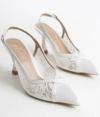 Feles Saten Dantel Taş Detaylı Arkası Açık Stiletto Kadın Topuklu Ayakkabı