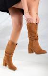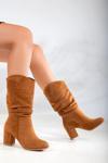 Feles Taba-Süet Suni Deri Büzgülü Kadın Çizme
