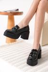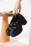 Felice Siyah Rugan Gümüş Tokalı Kadın Loafer