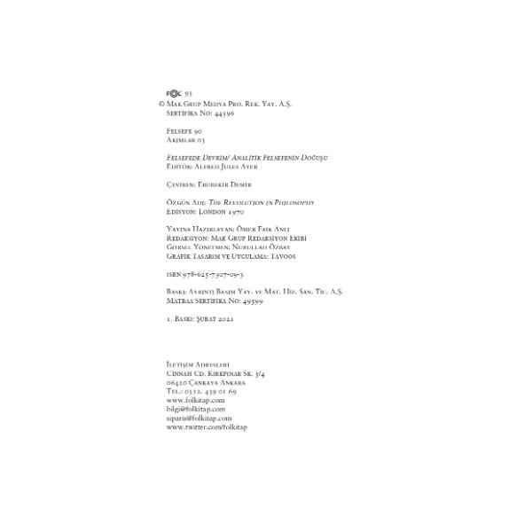 İngiliz idealist Bradley felsefesinde köklerini bulan analitik felsefenin tarihsel seyri, Frege'nin mantıkta gösterim devrimi ve Moore'un sağduyu felsefesi ile dönülmez bir rotaya girmişti. Şüphesiz bu devrimin en önemli paydaşları Viyana Çevresi filozofları, Schlick, Carnap, Neurath ve Reichenbach'tı. Tüm bunlarla beraber elinizdeki kitap, analitik felsefenin kurucu düşünürleri, Frege, Moore, Viyana Çevresi filozofları, Wittgenstein ve Russell felsefelerine giriş yapmaktadır.