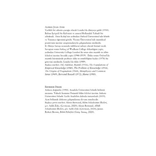 İngiliz filozof A. J. Ayer'in editörlüğünü yaptığı bu çalışmayı, Gilbert Ryle'ın Giriş'i ve P. F. Strawson'ın felsefenin mahiyetine ilişkin değerlendirmeleriyle sunuyoruz.
