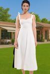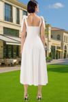 Elbisenin kalp yaka detayı ve bağcıklı askıları, romantik ve şık bir görünüm yaratırken, skater kalıbı her vücut tipine mükemmel uyum sağlar. Astarlı yapısı sayesinde, teninize temas etmez ve gün boyu rahatlık sağlar. Eteğinin belden açılan tasarımı ise hareket özgürlüğünüzü kısıtlamaz ve size özgüven kazandırır.