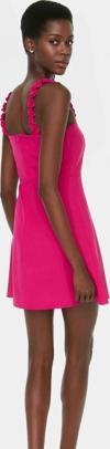 Bu nefes kesici mini elbise, feminen detayları ve A-line kalıbıyla göz kamaştırıcı bir stil yaratmanızı sağlar. Fırfırlı askıları ve kare yakasıyla tarzınıza zarif bir dokunuş katar. Yaz aylarının enerjisini yansıtan canlı fuşya rengi, her ortamda dikkatleri üzerinize çekecek. Dokuma kumaşından üretilen bu elbise, hem şık hem de rahat bir kullanım sunar. Nefes alabilen yapısıyla gün boyu konforlu bir deneyim yaşamanızı sağlar. A-line silueti vücut hatlarınızı kusursuz bir şekilde sararken, mini boyu da cesur ve modern bir görünüm sunar. Polyester ve elastan karışımı sayesinde hem esnek hem de dayanıklıdır. Günlük kombinlerinizden özel davetlerinize kadar her türlü ortamda rahatlıkla kullanabileceğiniz bu elbise, gardrobunuzun vazgeçilmez parçalarından biri olacak. Makinede yıkama kolaylığı sağlayan bu elbise, pratikliği ve şıklığı bir arada sunar.