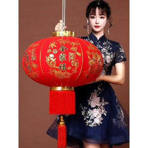 Çin Feneri Festival Parti Dekorasyon Düğün Feneri Kırmızı Kadife Yuvarlak 40 cm