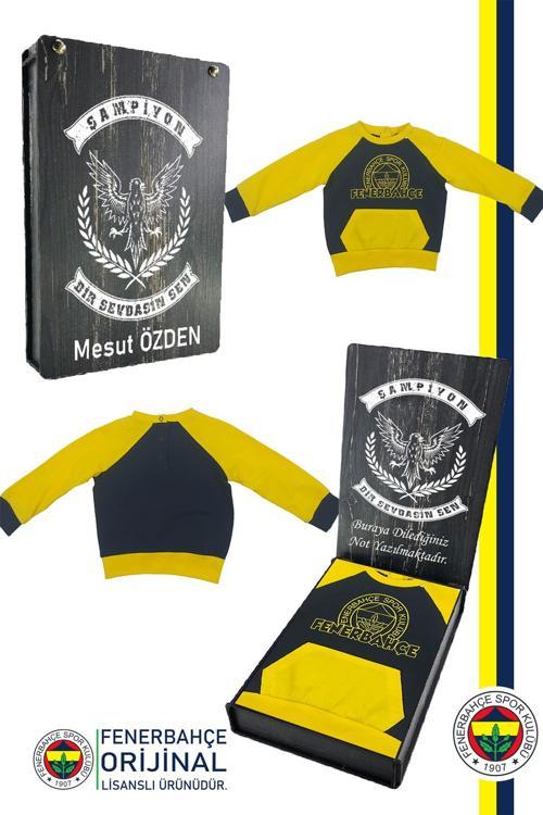 Fenerbahçe Orijinal Fb Logo Sarı-Lacivert Bebek Sweat Kişiye Özel Hediyelik Ahşap Kut