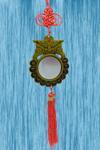 Çin Şans düğümlü, enerji arttıran kırmızı renkli, Bagua ayna. Çince karakterler ve hayvan temaları ile