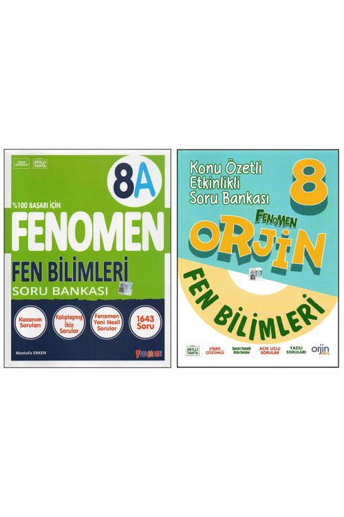 FENOMEN 8. SINIF 8A+ORJİN FEN BİLİMLERİ (2 KİTAP) *FENOMEN 8. SINIF FEN BİLİMLERİ 8A KAZANIM SORULARI KALIPLAŞMIŞ İKİZ SORULAR FENOMEN YANİ NESİL SORULAR 1643 SORU VİDEO ÇÖZÜMLÜ AKILLI TAHTA UYUMLU 320 SAYFA 2025 BASIM *ORJİN 8. SINIF FEN BİLİMLERİ KONU ÖZETLİ ETKİNLİKLİ SORU BANKASI KONU ÖZETLİ ETKİNLİKLİ SORU BANKASI VİDEO ÇÖZÜMLÜ AKILLI TAHTA UYUMLU BECERİ TEMELLİ SORULAR AÇIK UÇLU SORULAR YAZILI SORULAR 368 SAYFA 2024 BASIM