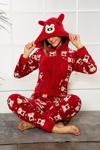 Pijamoni Kadın Süet Önden Düğmeli Pijama Takımı 56603 - 1 Adet Kırmızı-XL - Image 1
