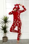 Fermuar Detaylı Kışlık Welsoft Polar Kadın Tulum Pijama Takımı