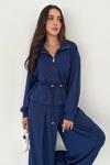 İki parçadan oluşan bu takım, indigo rengiyle dikkat çeker.