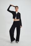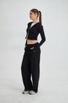Kadın Crop Fermuarlı Kapüşonlu Ceket & Yüksek Bel Bol Paça Eşofman Altı Takımı