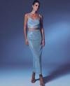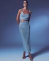 Hafif esnek bel, arka fermuarlı, iç astarlı, esnek, payetli uzun etek.