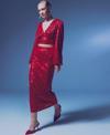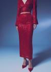 Hafif esnek bel, arka fermuarlı, iç astarlı, esnek, payetli uzun etek.