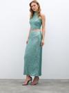 Hafif esnek bel, arka fermuarlı, iç astarlı, esnek, payetli uzun etek.