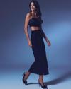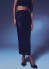 Hafif esnek bel, arka fermuarlı, iç astarlı, esnek, payetli uzun etek.