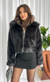 Fermuarlı kısa kürk siyah t7746, şıklığı ve sıcaklığı bir arada sunar.