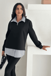 Fermuarlı oversize sweatshirt ve gömlek kombinasyonu, modern şehir stilinin vazgeçilmez bir parçasıdır. CEMO markası tarafından tasarlanan bu katmanlı ürün, hem şıklığı hem de konforu bir arada sunar.