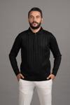 Fermuarlı Polo Yaka Polyamid Kumaş Kendinden Çizgili Likralı Triko Kazak