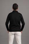 Unisex Yarım Boğazlı Baskılı Dokuma Triko - Siyah - Image 1