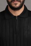 Advante Fermuarlı Polo Yaka Polyamid Kumaş Kendinden Çizgili Likralı Triko Kazak