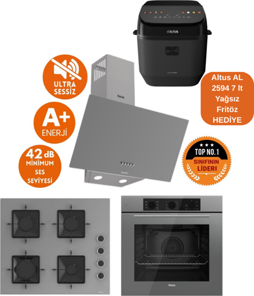 Ferre Flowart Sessiz Yeni Seri Antrasit Gri Ankastre Set (D088-SA + QBL62CPR +SS208) Altus AL 2594 SF 7 lt Yağsız Fritöz Hediye