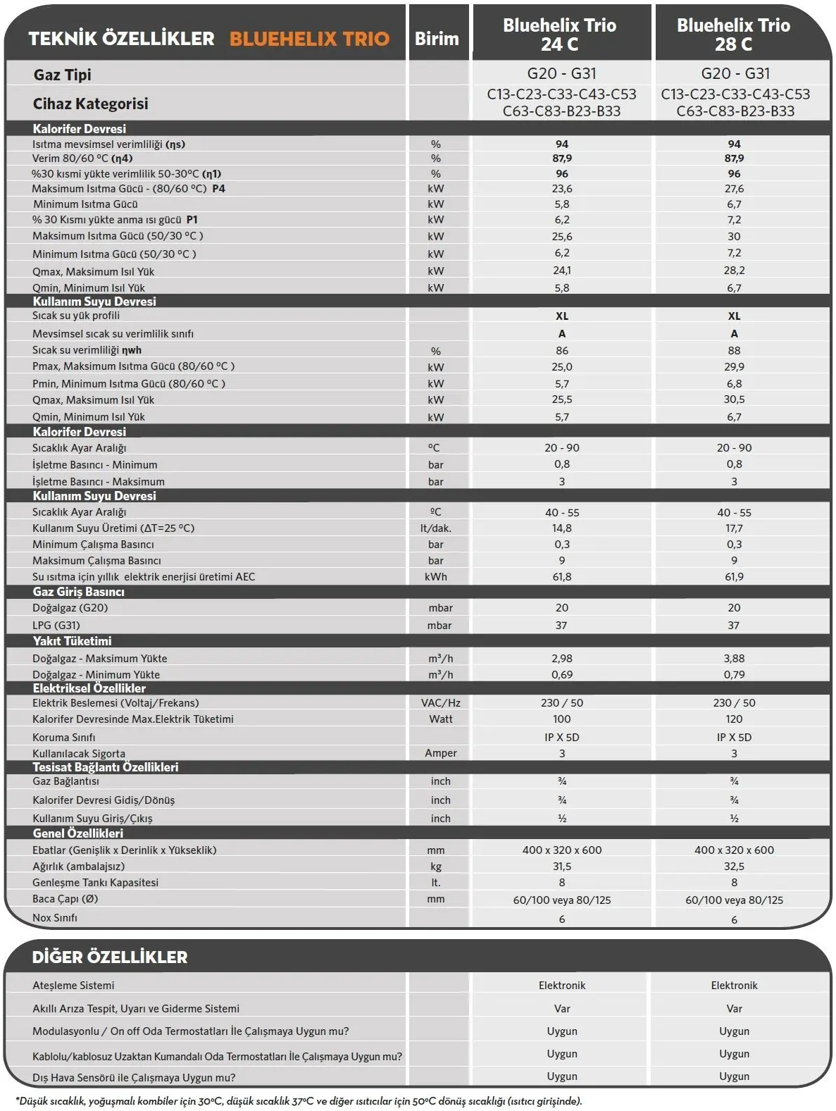 Ferroli Bluehelix Trio 28 kW Yoğuşmalı Kombi
